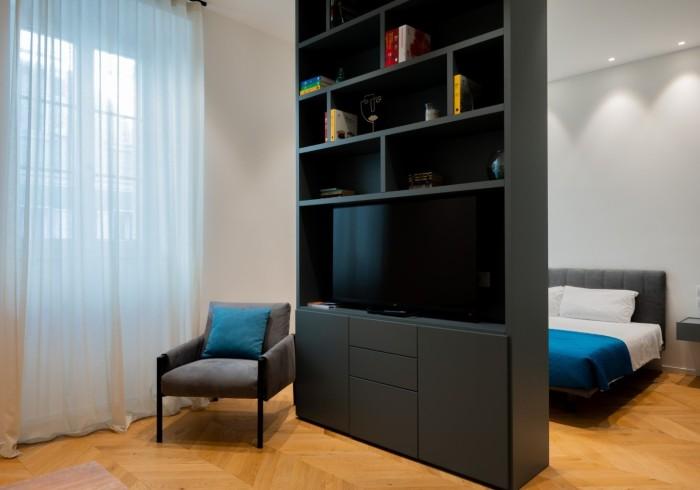 The apartment features a cozy, separate sleeping area, perfect for relaxing in peace.
